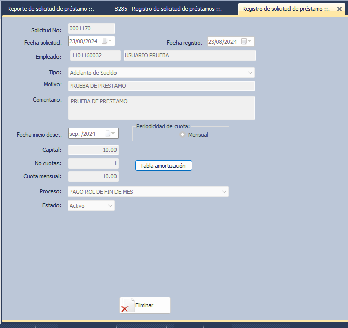 Seleccione el proceso en el que descontará el préstamo del empleado.