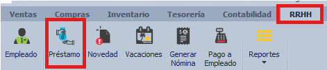 Para realizar la solicitud de préstamo en el sistema, seleccione en el menú superior o cinta el módulo RRHH o con la opción 8285 del formulario: