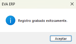 Dar clic en guadar, donde se abrirá una nueva ventana que indique "Registro grabado exitosamente".