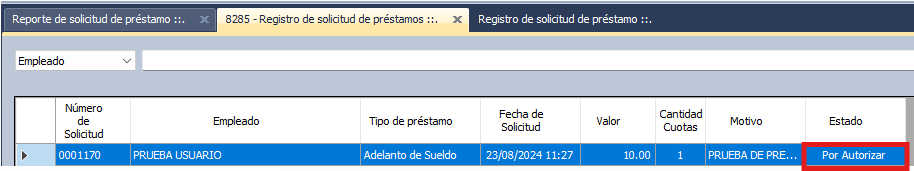 Seleccionar la fecha de solicitud del préstamo del empleado.