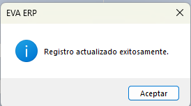 Se abrirá una nueva ventana donde indicará, "Registro actualizado exitosamente