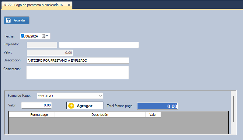 Seleccione la forma de pago en la que cancelará el préstamo al empleado.