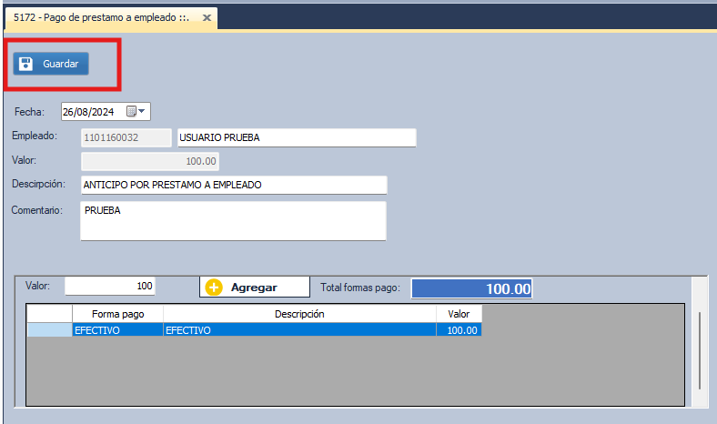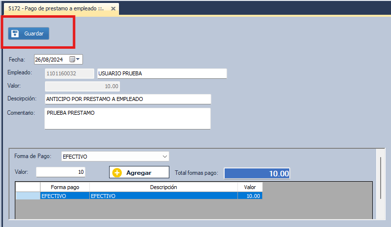 En este artículo se muestra la forma de realizar el pago de un préstamo a empleado de una solicitud creada anteriormente en el formulario Solicitud de préstamo a empleado.