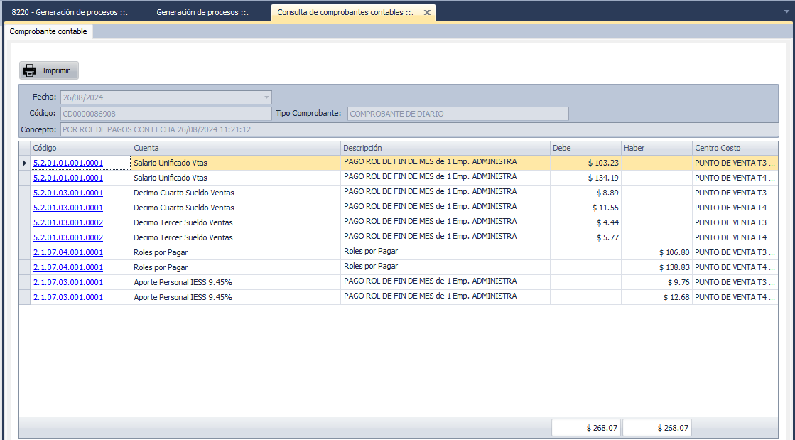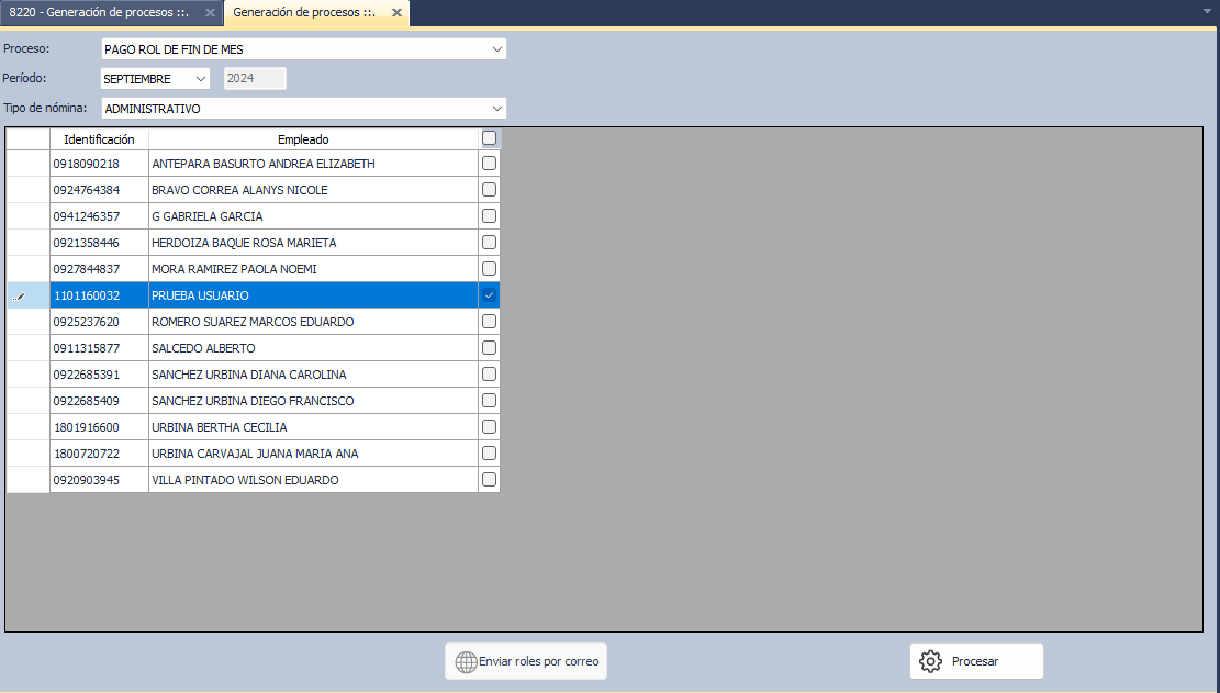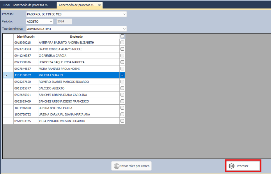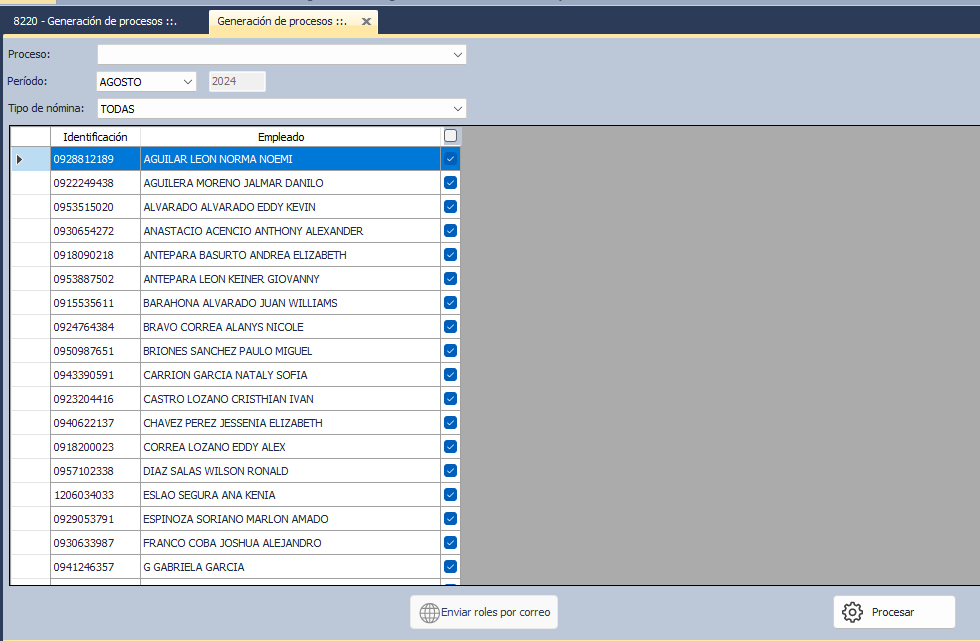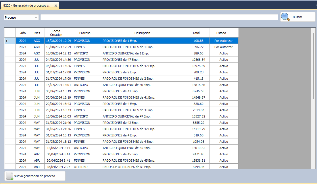 Posteriormente, se reflejará procesos de nómina generados en el listado del formulario 8220.