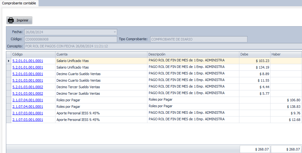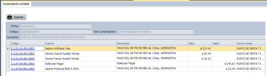 Vuelve a consultar la nómina en el menú superior : RRHH - Generar Nómina