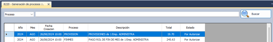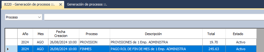Se apertura la ventana con el nombre 8220 - Generación de procesos.
