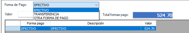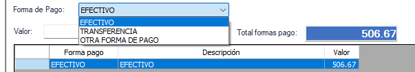 Seleccione la forma de pago de preferencia e ingrese el valor a pagar.