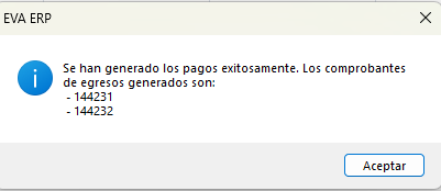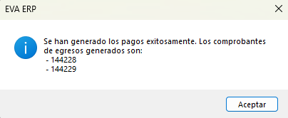 Se abrirá una nueva ventana, de los comprobantes de egreso realizados por la transacción.