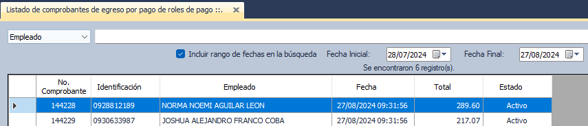Pódra verificar el ingreso con éxito de los pagos de roles masivos en el Listado de pago de roles.