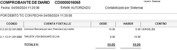 Se genera el comprobante diario de la transacción y se verifica la asignación de Centro de Costos.