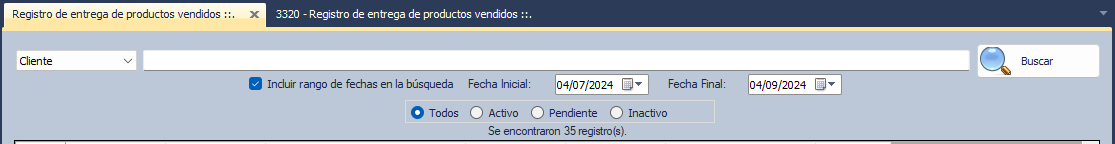 Se apertura la ventana con el nombre Registro de entrega de productos vendidos.
