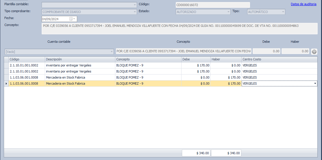 - Bodega: Es el lugar destino que va a permanecer la entrega.