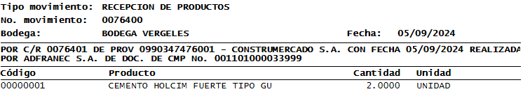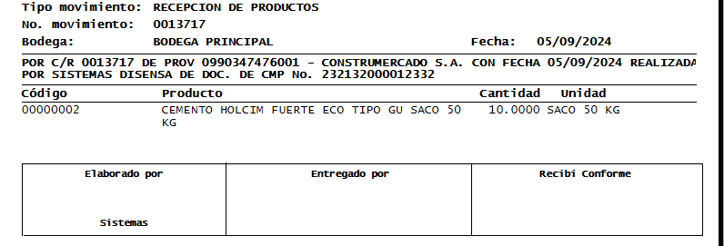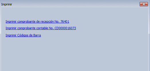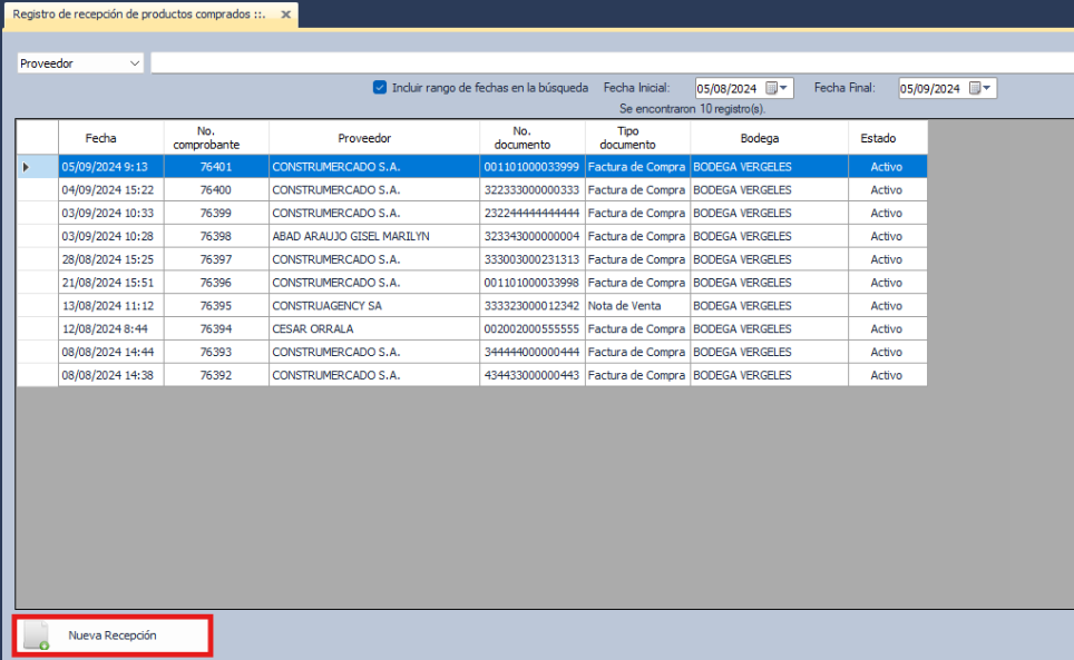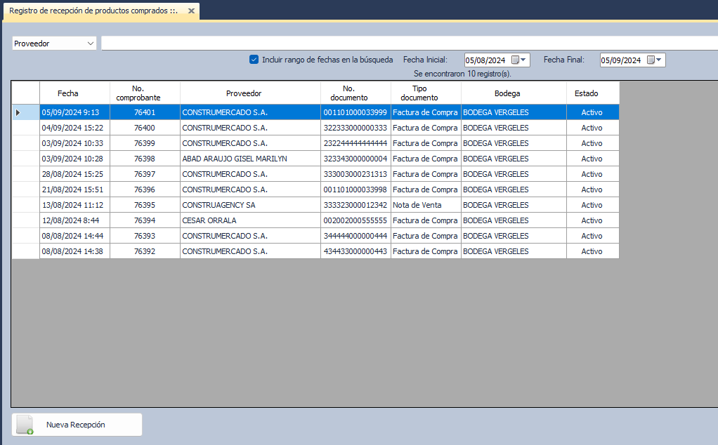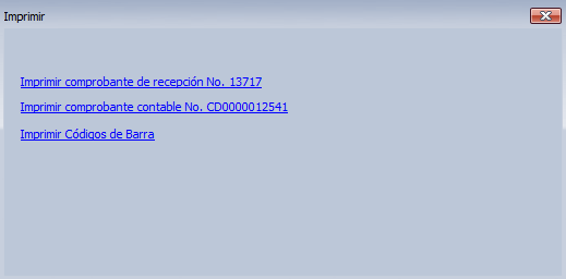Se apertura la ventana con el nombre Registro de recepción de productos comprados.