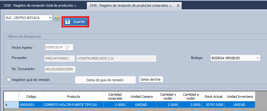 Procedemos a guardar la entrega Total de los productos, dando clic en Guardar.