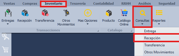 Para recepcionar los productos desde la factura de compra, seleccione en el menú superior o cinta el módulo Inventario.