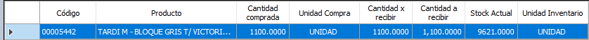 - Cantidad a recibir: Indica el número a recibir de la compra.
