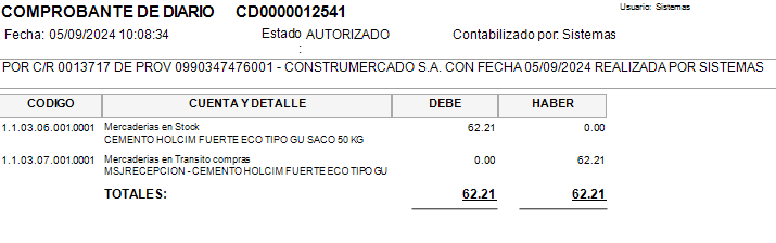 Los movimientos contables generados por la transacción, donde se verifica la asignación de Centro de Costos: