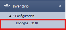 Puede crear bodegas desde el menú izquierdo en el módulo de Inventario/ 6 Configuración / Bodega - 3110.