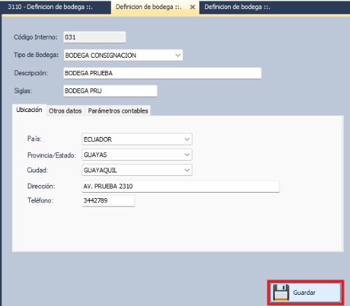 Una vez ingresado todos los datos en las diferentes pestañas, procedemos a dar clic en guardar.