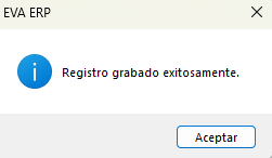 Aparece la ventana indicando el ingreso éxitoso de la bodega.