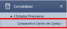 Desde el menú izquierdo con la opción 6567 en Contabilidad - Estados Financieros- Comparativo Centro de Costos.