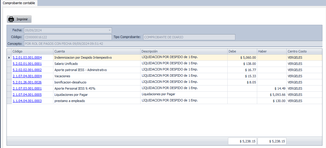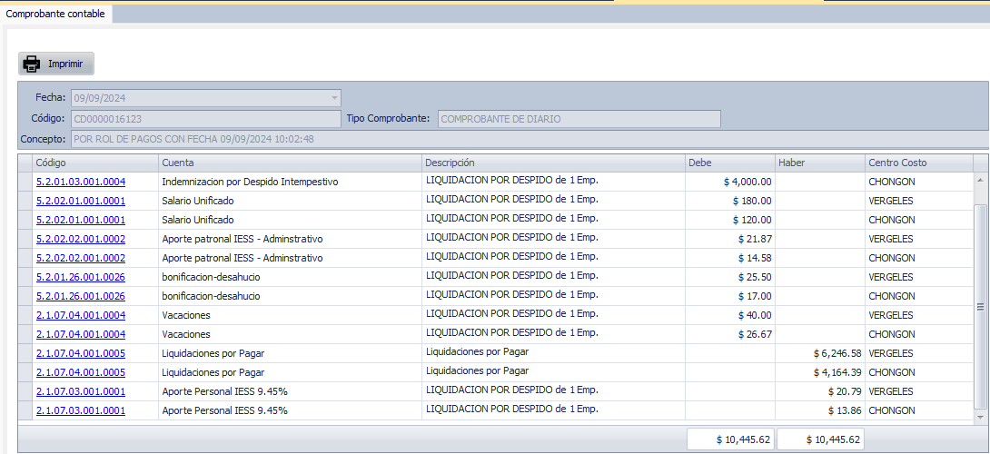 Nota: La asignación de Centro de Costos en las cuentas contables la tomarán de la configuración del empleado desde Link.