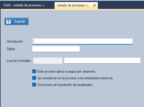 - Ingrese la cuenta contable a la que afectaría este nuevo proceso por crear.