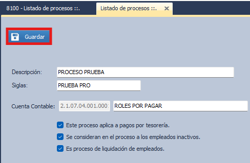 - Para finalizar, dar click en Guardar.