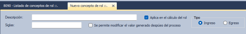Seleccionar el tipo del concepto de rol ( Ingreso o Egreso).