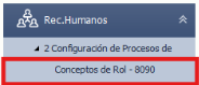 Para realizar la configuración de rol en el sistema, seleccione en el menú izquierdo Recursos Humanos- Configuración de Procesos de Conceptos de Rol - 8090.