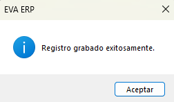 Se abrirá una nueva ventana que indique "Registro grabado exitosamente".
