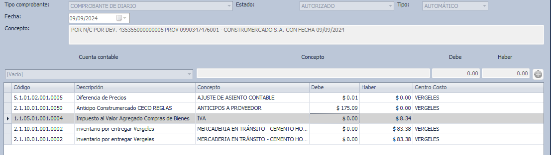 6) Se verifica Movimientos contables con asignación de Centro de Costos.