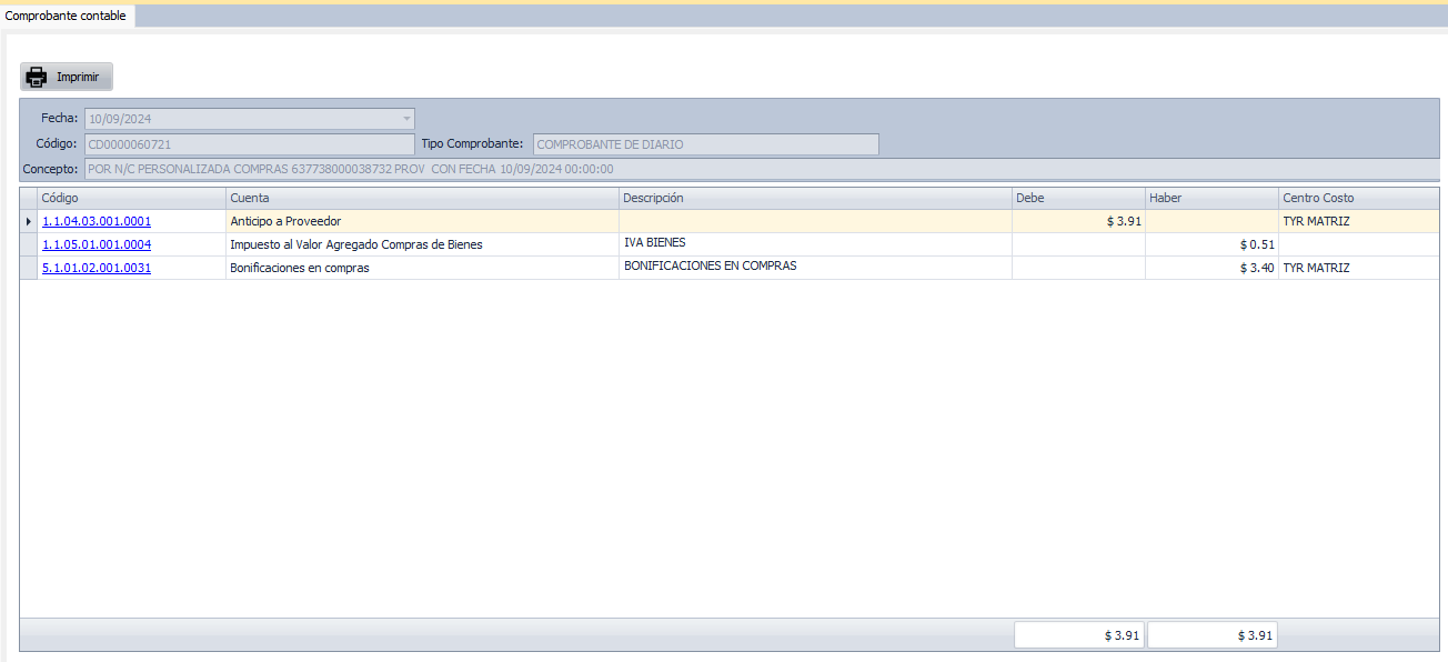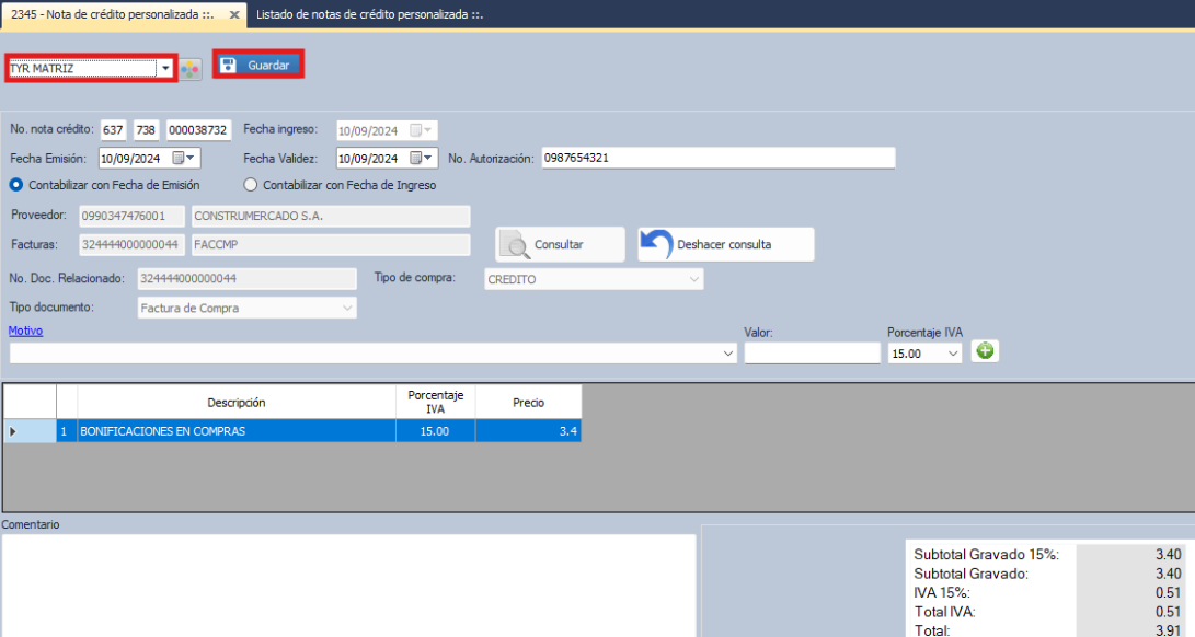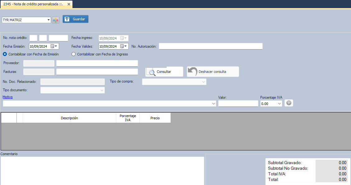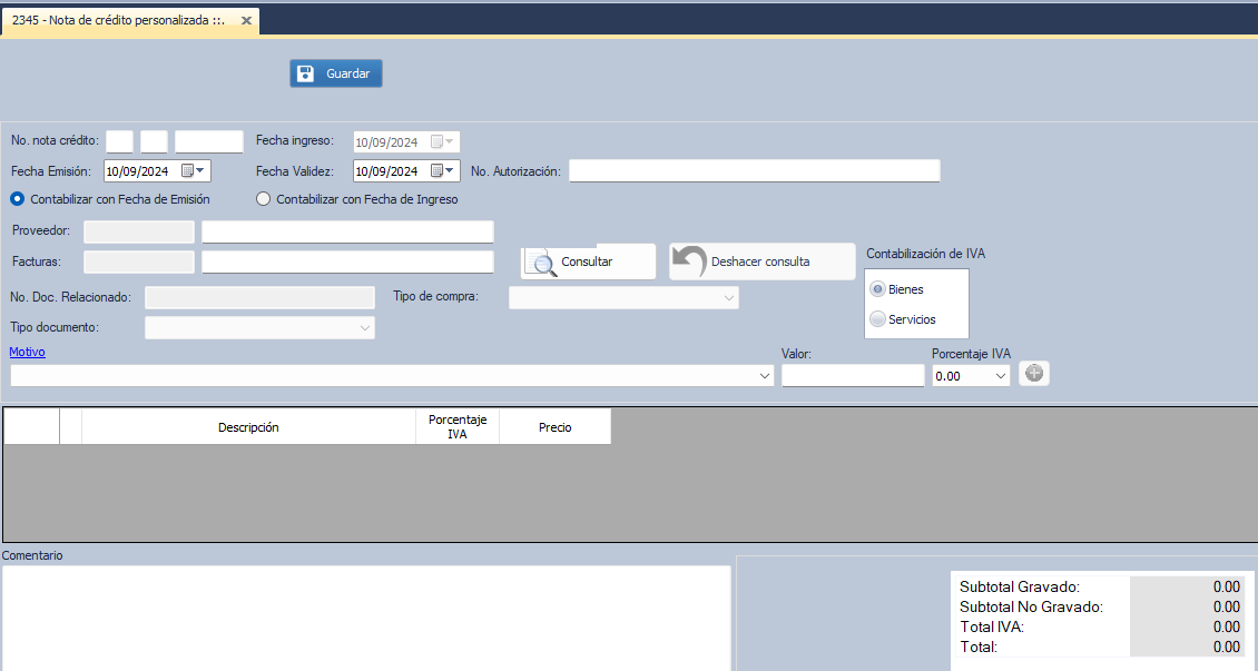 Se apertura una nueva ventana con el nombre de 2345- Nota de crédito personalizada.