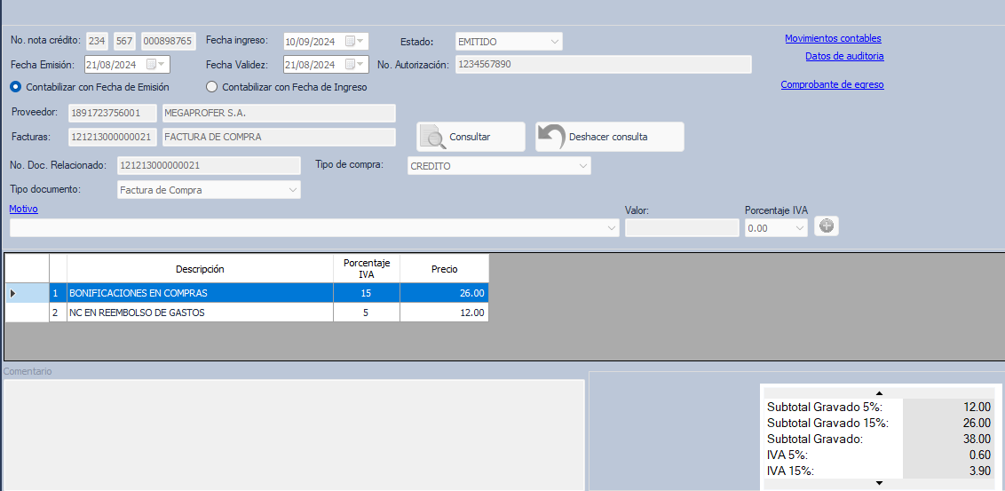 - Generar Notas de crédito personalizadas de una factura de compras en el sistema EVA ERP.
