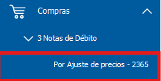 Desde el menú izquierdo ingrese a Compras- Notas de Débito- Por ajuste de precios.