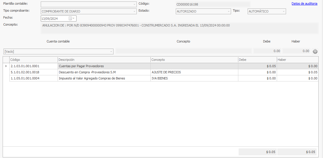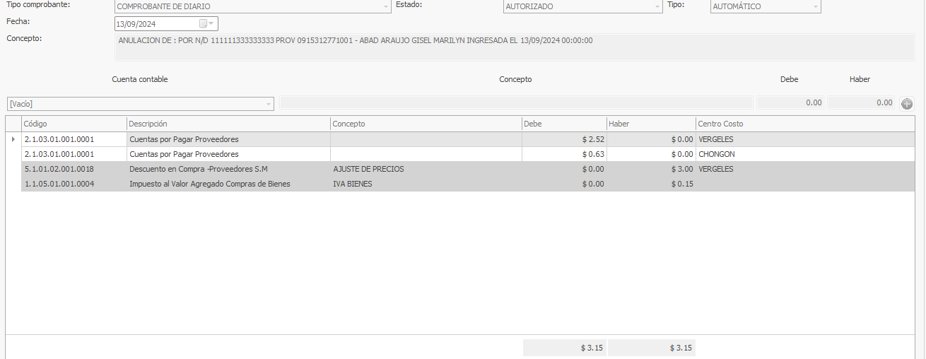Eliminar Notas de Débito por Ajuste con Centro de Costos