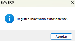 Se abrirá una nueva ventana donde indica, Registro inactivado de forma exitosa.