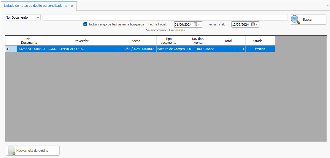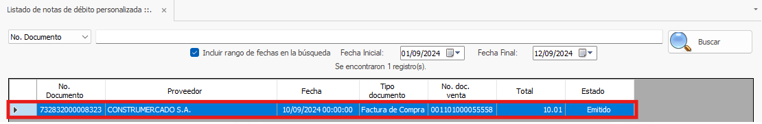 Desde el menú izquierdo ingrese a Compras- Notas de Débito- Personalizada.