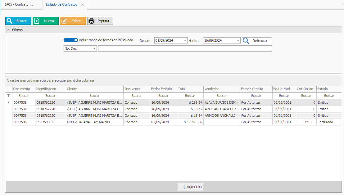 Desde el menú izquierdo ingrese a Ventas - Contratos-1405