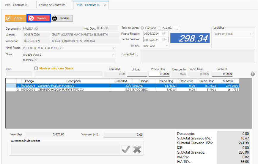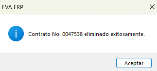 - Eliminar un contrato generado en el sistema EVA ERP.