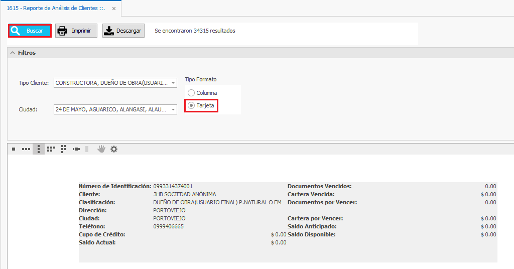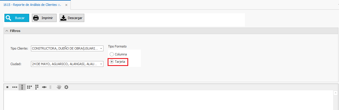 - Tipo Reporte: Le permite seleccionar el Tipo de Reporte Columna o Tipo de Reporte Tarjeta.