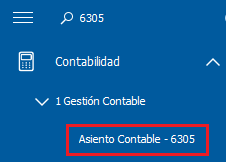 1) Diríjase al menú lateral izquierdo, al Módulo: Contabilidad - 1 Gestión Contable - Asiento Contable - 6305.
