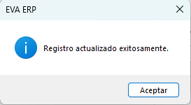 8) Se muestra el mensaje que el Registro actualizado exitosamente, dar clic en el botón Aceptar.