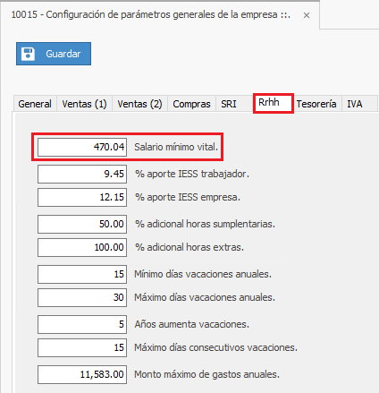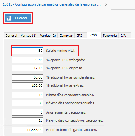3) Luego que realice la actualización del Salario Básico Unificado, dar clic en el botón Guardar.