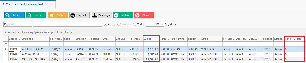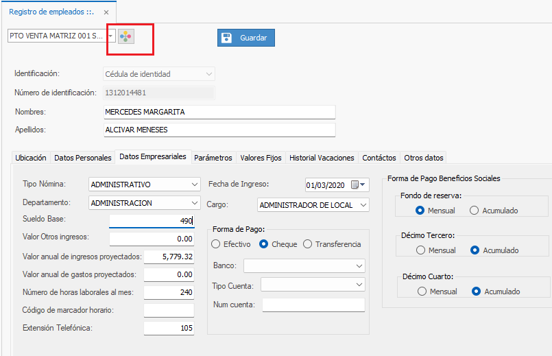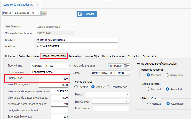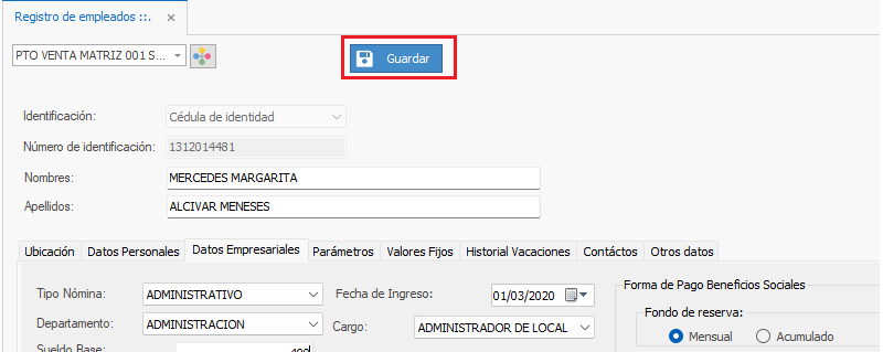 5) Una vez coloque el nuevo Sueldo del empleado, dar clic en el botón Guardar.