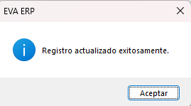 8) Se muestra el mensaje de Registro actualizado exitosamente, dar clic en el botón Aceptar.