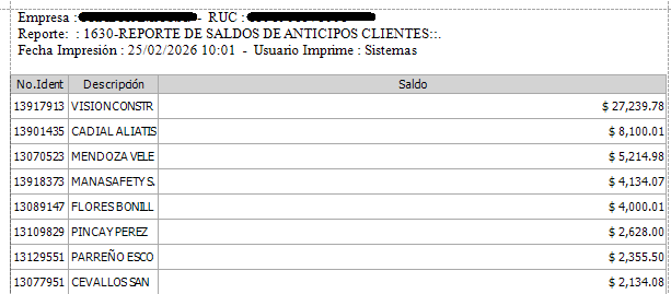 Pasos para Imprimir el Reporte de Saldos de Anticipos Clientes