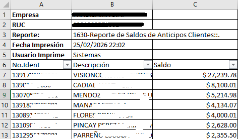 Pasos para Descargar el Reporte de Saldos de Anticipos Clientes