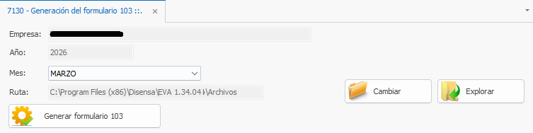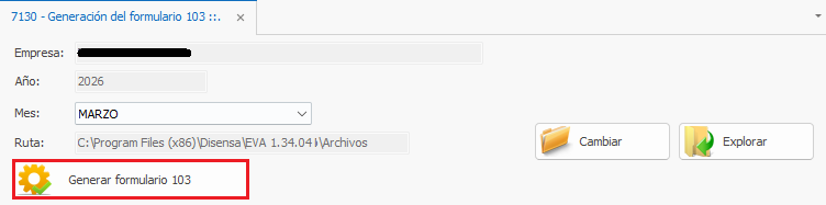 2) Se apertura la pestaña con el nombre 7130 - Generación del formulario 103.