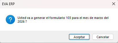 5) Se muestra un mensaje, indicando que el formulario 103 se generó de forma correcta, dar clic en el botón Aceptar.